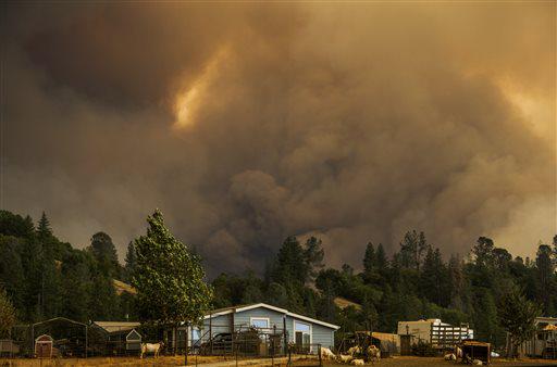 “The air is really thick with smoke, and ash is coming down,” Chad Wible said Friday night as he was leaving town. His wife and children already had left to stay with family in Sacramento.